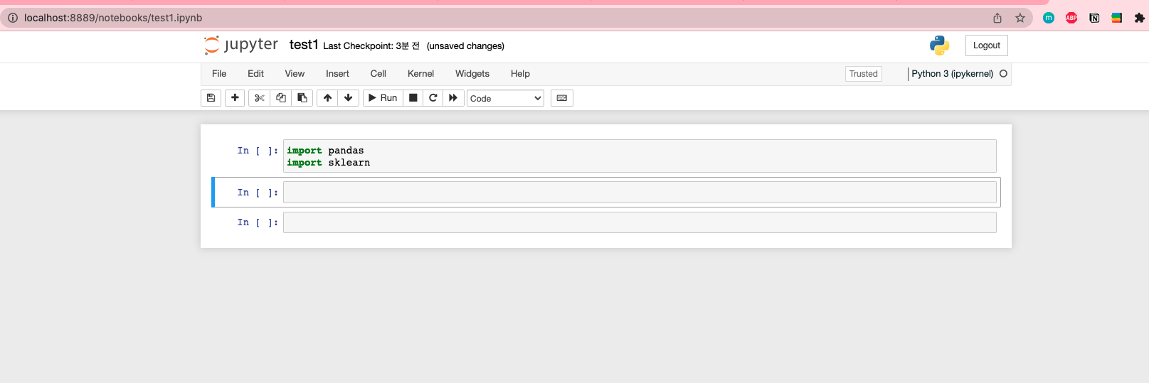 Home 에서 Jupyter Notebook 을 실행해서 판다스, 사이킷런 같은 패키지를 임포트해보면 이미 다 설치가 되어있어서 패키지 설치 없이 바로 임포트가 되는 것을 확인할 수 있다.