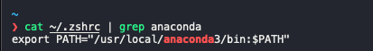 brew install anaconda # brew install miniconda(OPTIONAL) brew 로 설치 후 conda command 가 활성화되지 않는다면 ~/.zshrc 에 쉘 환경변수를 추가해주면 해결된다.
