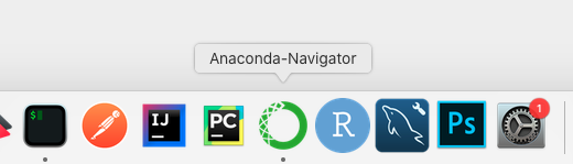 설치가 완료되어서 Dock 에 Anaconda-Navigator 를 옮겨두었다.