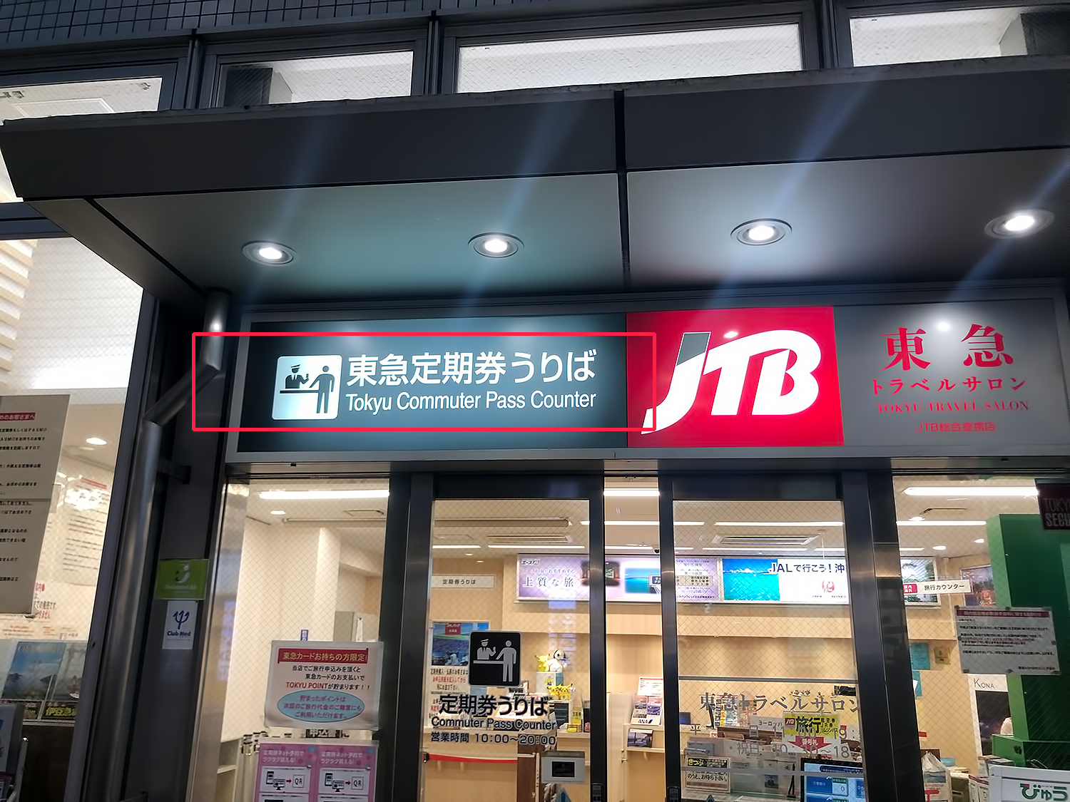 해당 철도사의 정기권 판매소 定期券うりば
