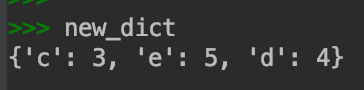 new_dict = {} dictionary = {'a': 1, 'b': 2, 'c': 3, 'd': 4, 'e': 5}기존의 딕셔너리에서 3이상의 key 값을 가지는 pair만 새 딕셔너리에 담으려고 한다. 이 때 기존 코딩법은 아래와 같다.