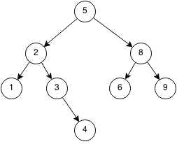 트리셋은 이진 탐색 트리에 자료를 저장하는 트리구조의 셋이다. 트리셋은, 내부의 로직에 맞게 데이터를 정렬하여 저장한다. 이 말인즉슨, 1,2,3,4,5,6,7,8,9 의 순서대로 데이터를 트리셋에 삽입하면 아래와 같이 정렬되어 저장된다. 순서를 바꾸어서 7,1,4,2,6,8,9,5 의 순서대로 데이터의 트리셋에 삽입하면? 그래도 똑같이 아래와 같이 저장된다. 내부 정렬을 요구하는 자료형을 저장할 수 있는 세트이다.